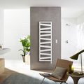 Like a steel band that wraps around the bathroom radiator, Zehnder Ribbon impresses with its modern design and practicality. Its oblique rungs are inspired by architectural structures with multiple levels. Large spaces provide the whole family with plenty of room to hang several towels. This linking of form and function transforms Zehnder Ribbon into a radiator that invites comfort and class into the bathroom. Available in any colour and finish from the Zehnder colour chart.